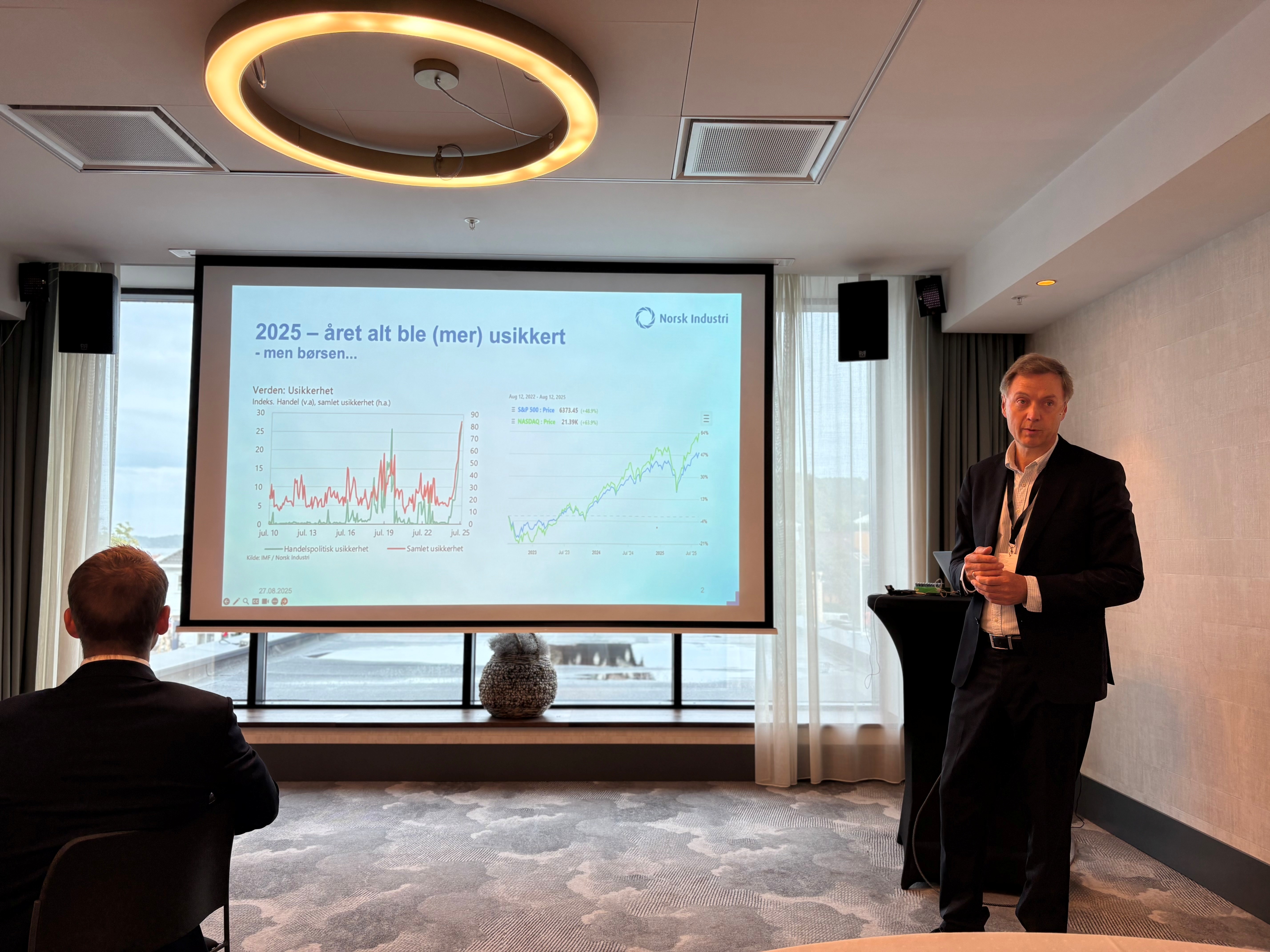 Knut E. Sunde, direktør i Norsk Industri, ga medlemmene i Grafisk bransjeforening en spennende reise gjennom tollsatser, proteksjonisme og norske industriutfordringer da han holdt innlegg på landsmøtet vårt.