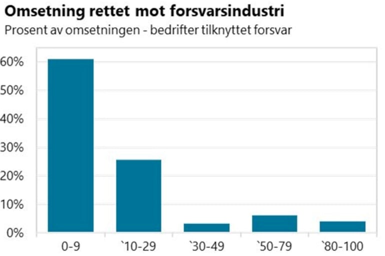 [2] Kilde: FFI (2025) Rapport 25/041 Norsk forsvarsindustri - Statistikk for forsvarsindustrien 2024