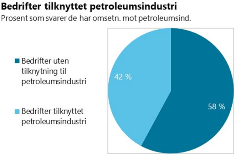 Leveranser til offshoresektoren påvirker mange bedrifter, i flere sektorer. I medlemsundersøkelsen svarer 42 prosent av industribedriftene at de har deler av omsetningen mot petroleumsindustrien.