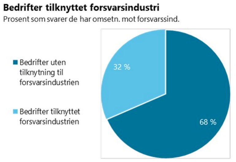 I medlemsundersøkelsen sier 32 prosent av bedriftene at de har omsetning rettet inn mot forsvarsindustrien. Etterspørselen i sektoren retter seg mot et bredt spekter av industrinæringer. Blant annet medfører dette økt aktivitet hos leverandører i energisektoren, innenfor maskinering, automasjon, produksjon av elektronikk og elektroniske systemer, hos produsenter av metallvarer, maskiner og deler, logistikk, transportmidler og i maritim sektor (se egen omtale av verftsindustrien nedenfor).