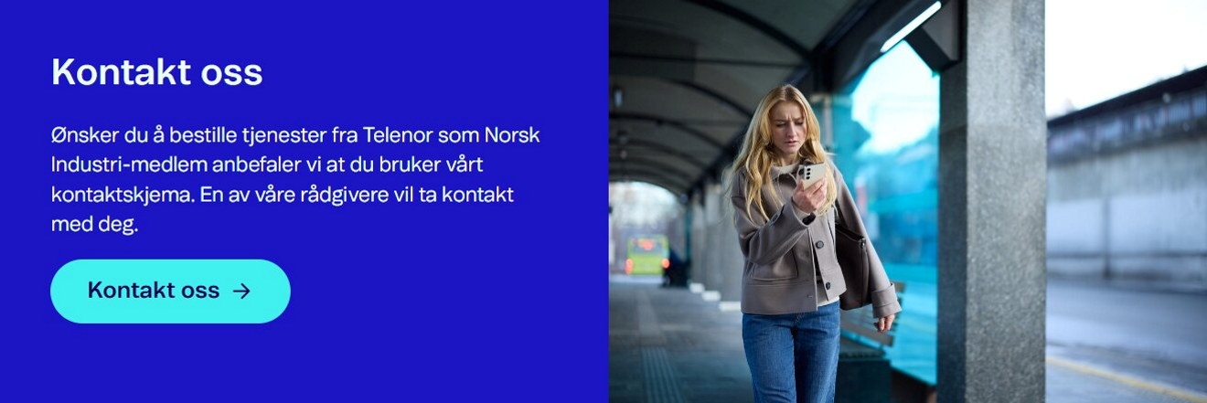 Norsk Industri har en god avtale med Telenor Norge. Våre medlemsbedrifter får svært gustige priser på mobiltelefoni, mobilt bredbånd, internett og fasttelefoni.